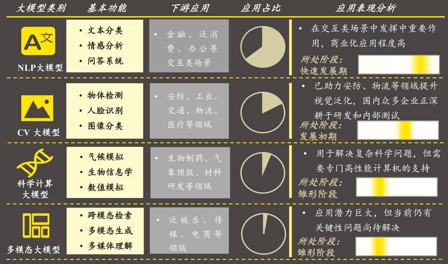 大模型按照功能可分为NLP大模型、CV大模型、科学计算大模型和多模态大模型。