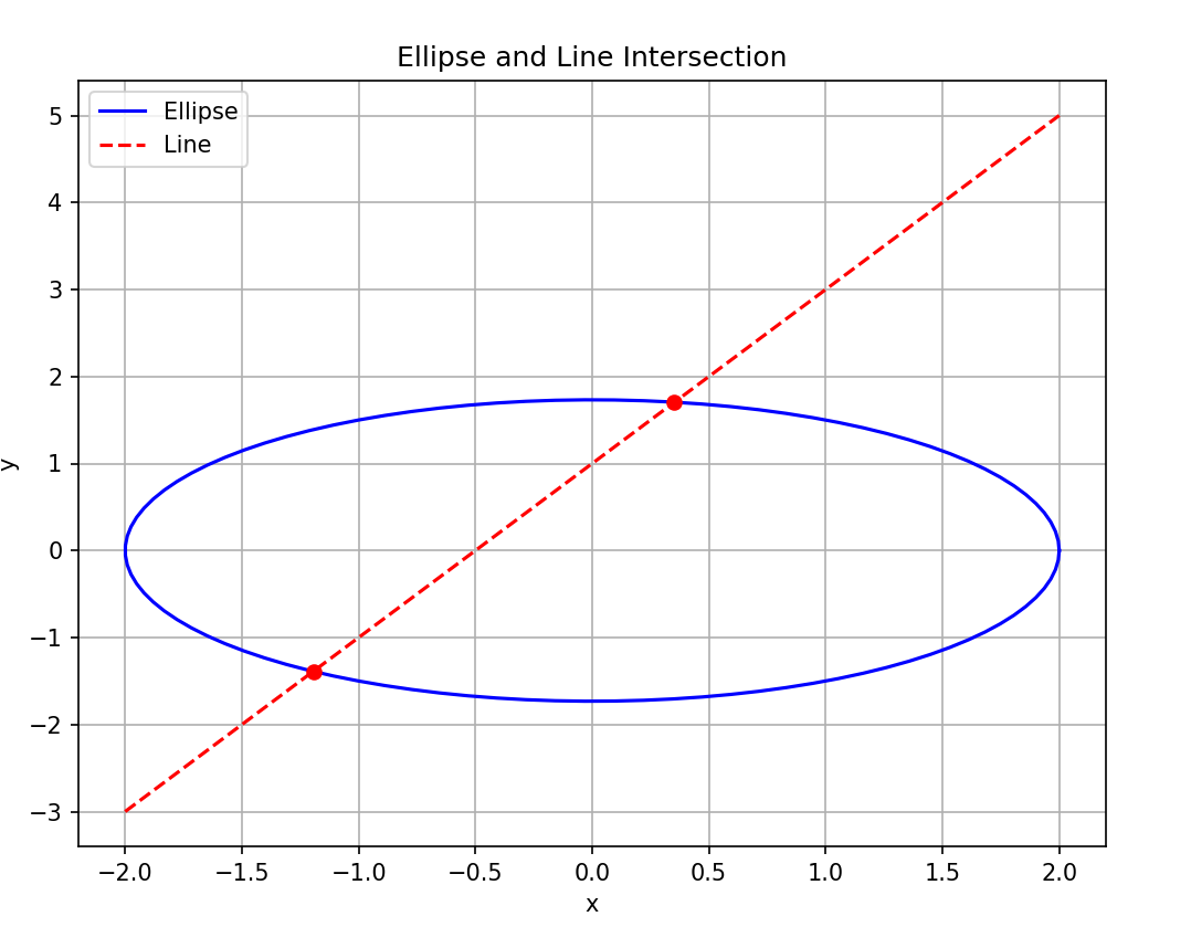 Eg:已知椭圆r:x\^2/4+y\^2/3=1,直线y=2x+1与椭圆r交于A,B两点,则|AB|的长度是多少,给出python编程计算并可视化的程序,注意不要只给出结果